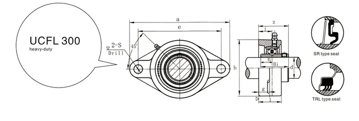 Bearing pedestal FL and UC can form UCFL200 and UCFL300 series. Similarly, it can also work with UK, UEL (NA), UB, SB and other components. The UCFL series combination is light in structure and convenient in installation. It is suitable for installation in the transmission part with small area. It is also suitable for installation in the vertical plane such as the mechanical side as well as the UCF series. Because the center distance of the two mounting bolt holes of the diamond bearing block is the same as the center distance of the two diagonal bolt holes of the square bearing block, they are interchangeable with each other. The SBLF200 series of spherical bearing with seat is a bearing with diamond seat designed for the purpose of lightweight. There are 7 models in this series from SBLF201 to SBLF207. Bearing pedestal LF can also be assembled with UB (SB) and UE (SA). These products are mainly used in packaging machinery, fruit sorter and other equipment.